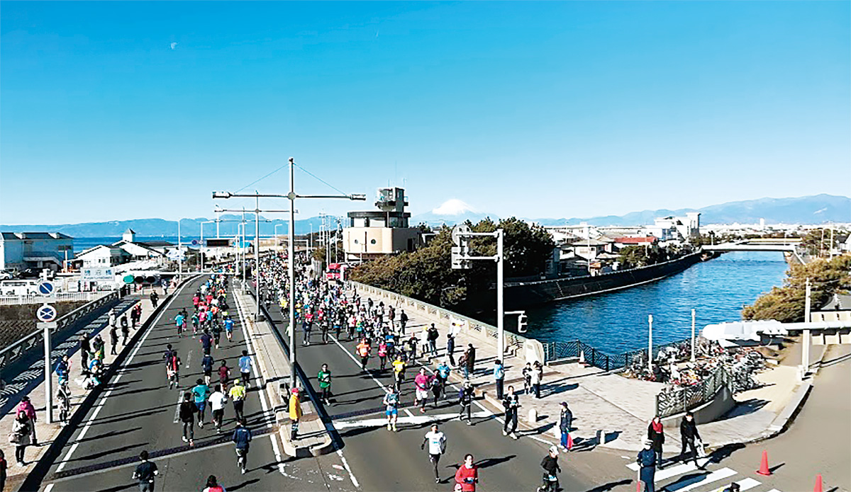 9回目を迎えた「藤沢市民マラソン」が1月27日、江の島をスタートし、約8千人が青天の湘南海岸沿いのランニングを満喫した=写真。