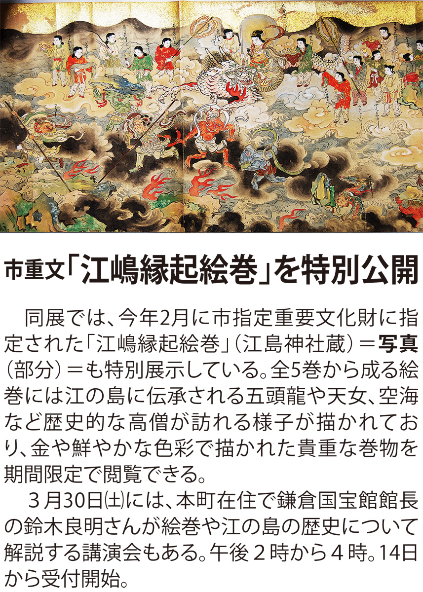 入館無料。開館は午前10時から午後7時(入館は6時30分まで)。月曜休館。問い合わせは同館【電話】0466・33・0111へ。