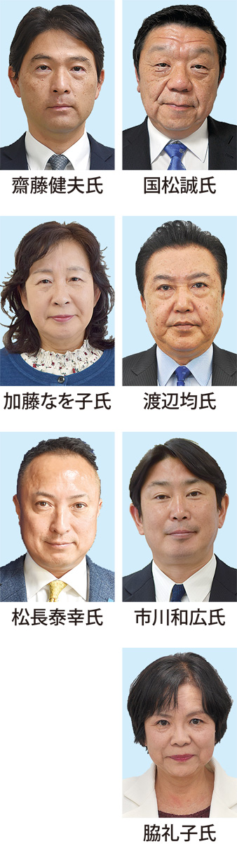 現職は国松誠(57・自民)、齋藤健夫(50・国民)、渡辺均(60・公明)、加藤なを子(60・共産)、市川和広(47・自民)の5氏。
