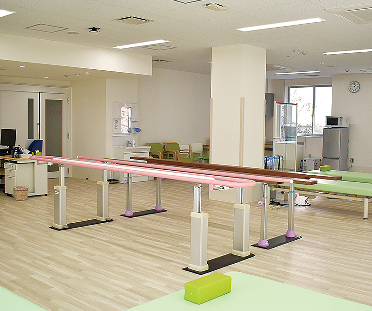 新棟では、地域社会に復帰するための機能訓練を行うリハビリテーション科を本格稼働させ、「リハビリ室」も開設。整形外科だけでなく、各診療科と連携し、理学療法士らの体制の強化、入院や急性期治療終了後の支援にも対応していく。