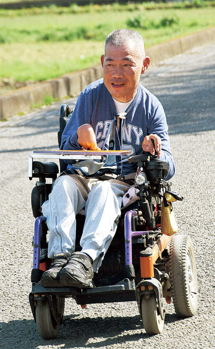 市内獺郷の障害者支援施設、湘南希望の郷に入所している山崎進さん(58)は、電動車いすでの散歩が日課。近隣では飽き足らず、辻堂駅前のテラスモール湘南、さらには平塚のららぽーとまで買い物に出かけている。