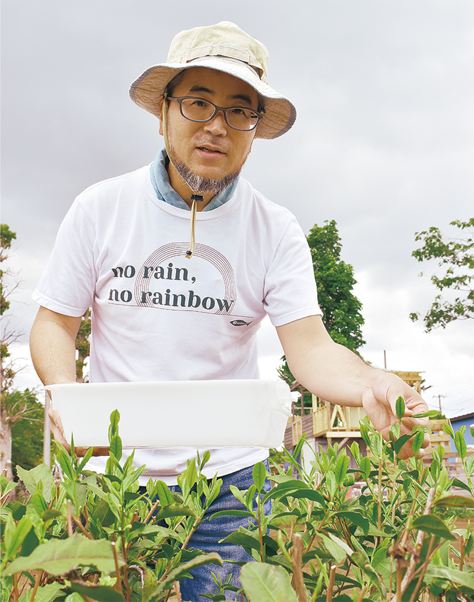 高橋さんが茶の栽培を始めたのは4年前、高知県を訪れた際に一般家庭の生垣でお茶が育てられているのを見て。いわば茶の”家産家消”。購入するだけでない楽しみ方を知って「湘南でも同じことができないか」と栽培を始めたという。