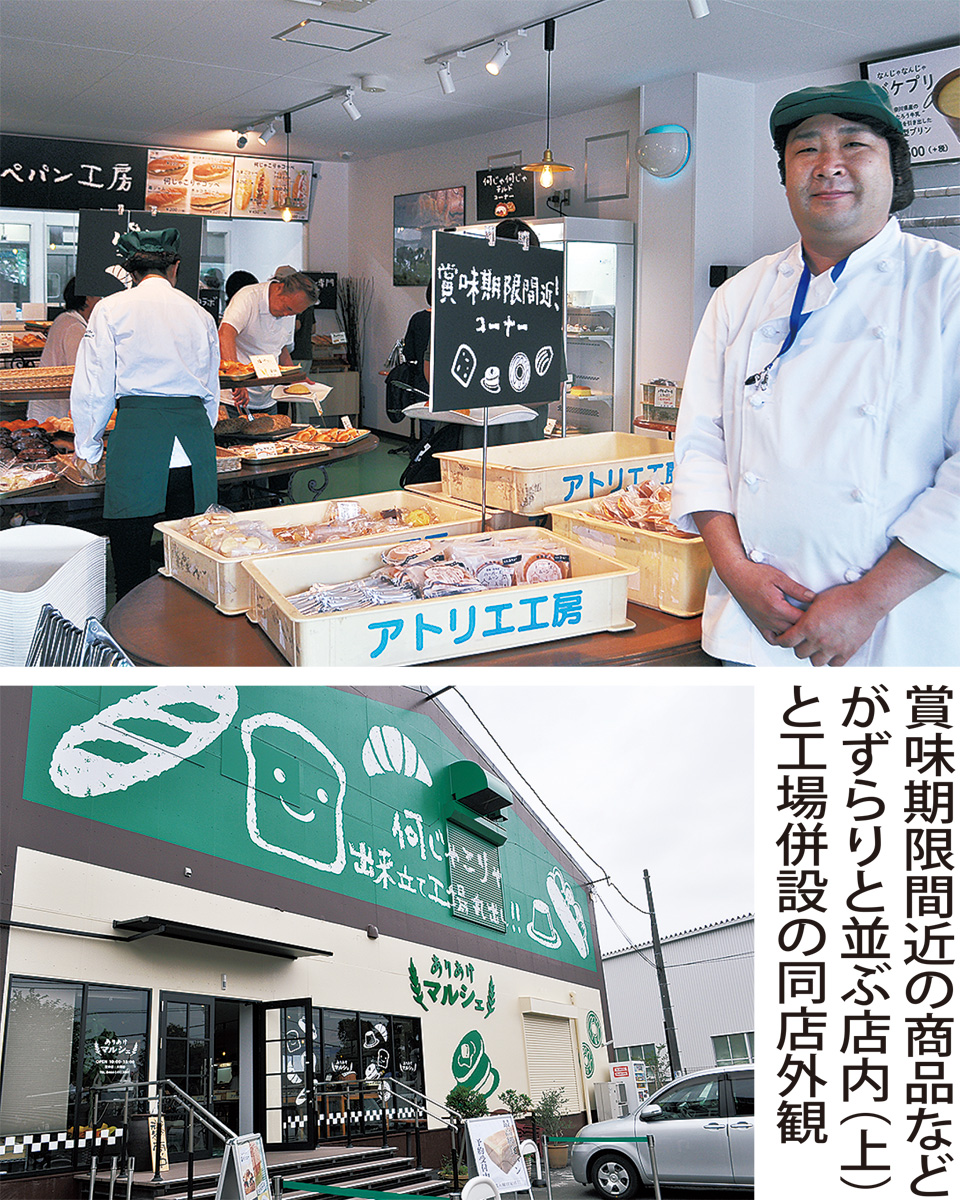 店内には規格外の焼き立てのハーバーや賞味期限間近の商品、同店限定のプリンやケーキ、パンなどがずらりと並んでいる。「アウトレット商品は、ほぼ半額で買うこともでき、1日約500人が各地から買い求めに来ている」と店長の櫻井崇さんは話す。