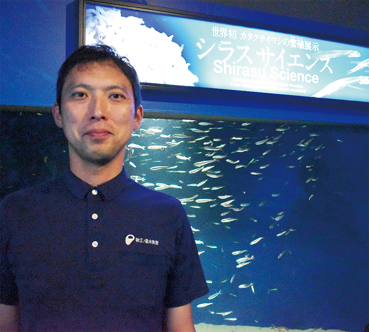 主にシラスの飼育を担当するのは、飼育員の伊藤寿茂さん。最初は前例がないため全てが手さぐり。海からシラスを運ぶため、網ですくうとあっという間に全て死んでしまった。またふ化後、展示のために水槽を掃除すると全滅してしまったり。試行錯誤を重ね、繁殖から成長まで一連の飼育を完結させる繁殖展示にたどり着いた。今では7世代目まで誕生している。