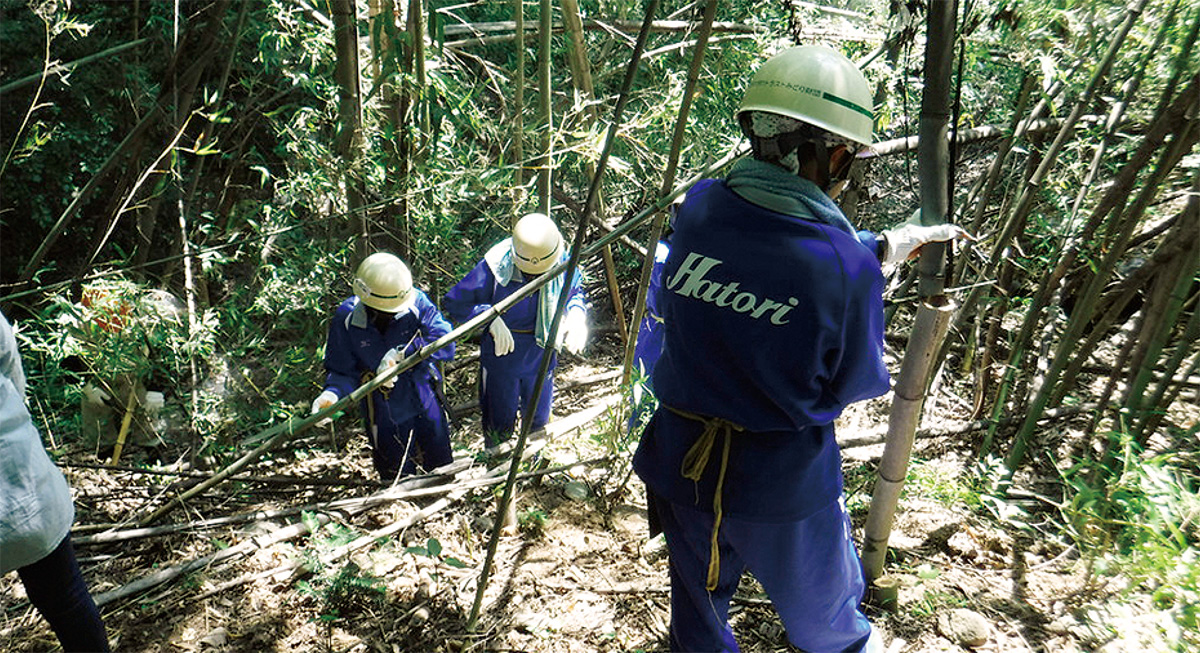 毎年、神奈川県立21世紀の森(南足柄市)で実施されている森林ボランティアが10日、行われた。羽鳥中の生徒ら45人が参加。炎天下の中、杉やヒノキの成長を妨げる竹を伐採した。