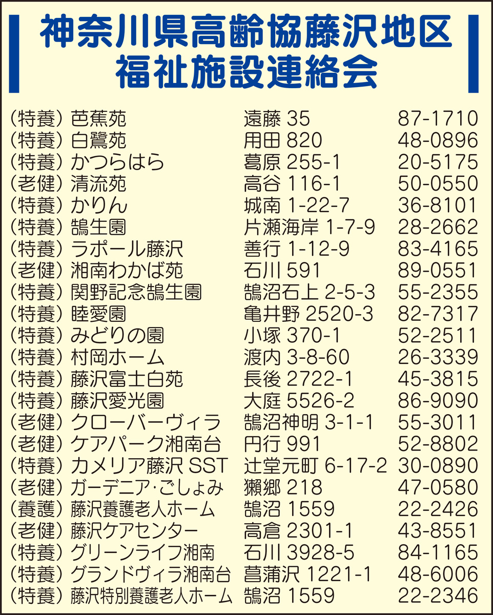介護現場の実践事例を紹介する発表会「第13回安心した老後を創るために」が10月6日(日)、藤沢商工会館ミナパーク(藤沢607の1)で開かれる。神奈川県高齢協藤沢地区福祉施設連絡会(川瀬和一会長)が主催。