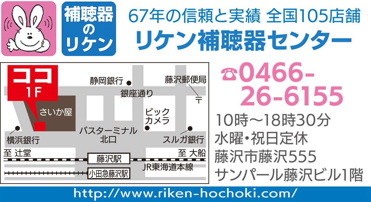 そう呼びかけるのは、認定補聴器専門店『リケン補聴器センター藤沢店』。藤沢駅北口徒歩1分、さいか屋前にある地域密着店だ。