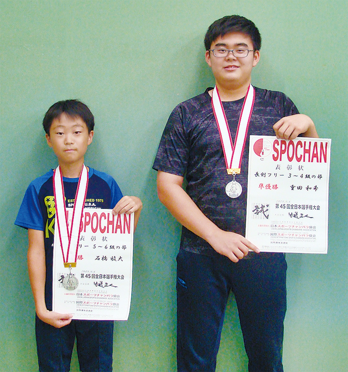第45回全日本スポーツチャンバラ選手権大会が先月8日に横浜文化体育館で行われ、藤沢青少年会館スポーツチャンバラクラブから石橋稜大さんが5・6級長剣フリーの部、重田和希さんが3・4級長剣フリーの部で準優勝を果たした。