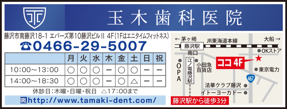 歯周病治療は豊富な知識と高度なスキルを要するため、歯周病専門医や指導医による治療が望ましいという。玉木院長は湘南エリアで数人しかいない「日本歯周病学会指導医」。精密な診査と診断でインプラントや審美歯科にも対応する。CTを使用し従来よりも正確に診断。マイクロスコープやレーザーを用いた治療も受けられる。初診の場合はHP予約も可。
