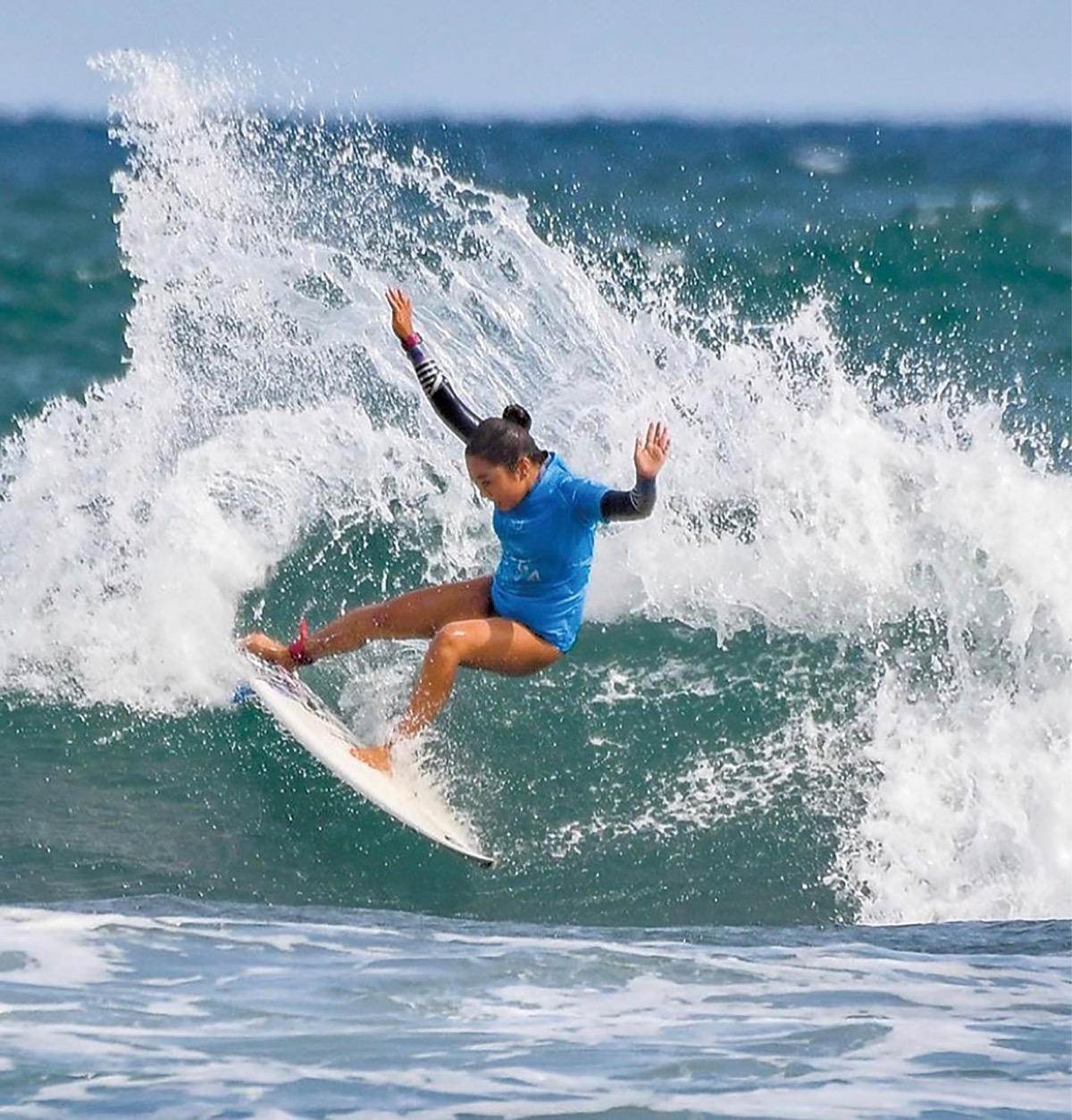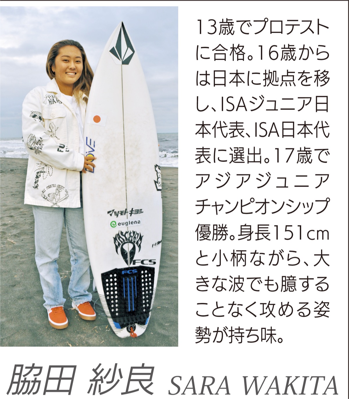 東京五輪から新種目に採用されたサーフィンで、代表候補として出場を目指す藤沢市出身の選手がいる。プロサーファーの脇田紗良さん(17)。残る出場枠は一つと狭き門だが、昨シーズン大きな飛躍を遂げた。獲得がかかる4月のジャパンオープンに向け「全力でチャンスをものにしたい」と意気込んでいる。