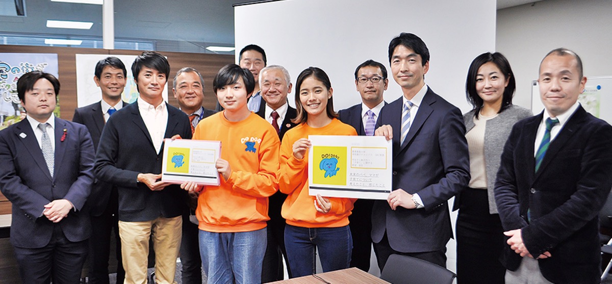 学生や教職員、卒業生が協働で取り組む同大の「SBC(Student Build Campus)」の一環。OBの高橋成壽さん(41)が「出生率向上」をテーマに発案し、1年生4人と2年生1人が参加した。