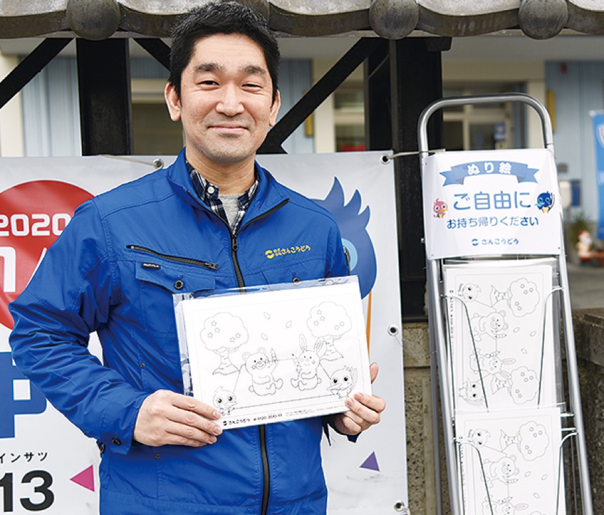 本町の印刷会社・さんこうどう(川上彰久代表)は、余り紙を再利用して、子ども用の塗り絵を作り無料で配布している。一斉休校で家に閉じこもりがちな子どもたちのためにと始めた。