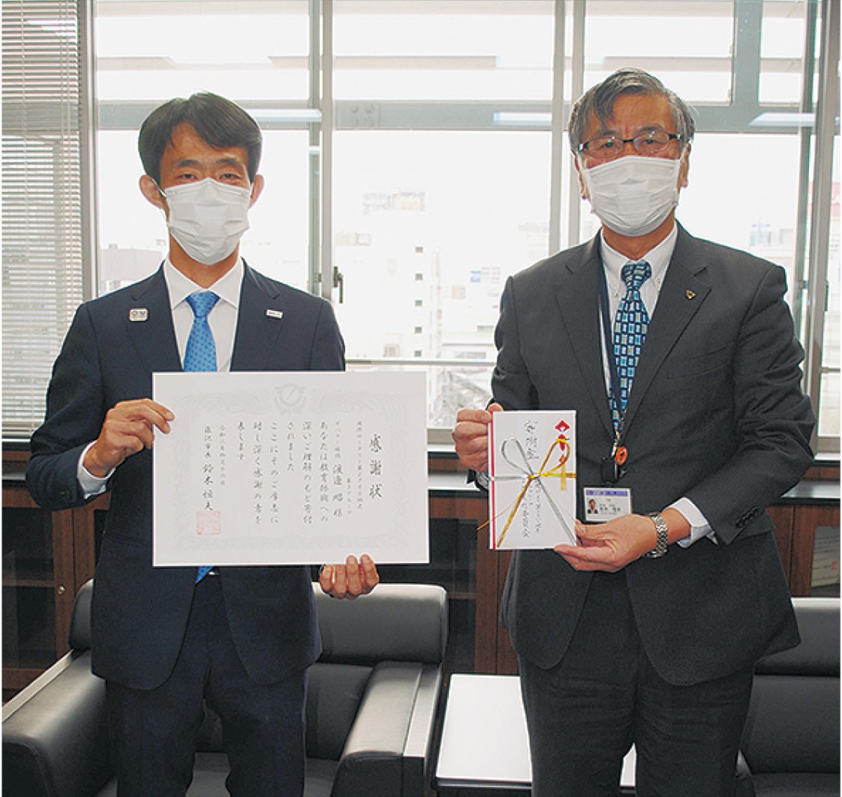 寄付金は教育振興へ使われる。ガバナー補佐の渡邊昭さんは「厳しい状況が続いているが、収束を願うとともに、少しでも子どもたちの役に立てば」と話した。
