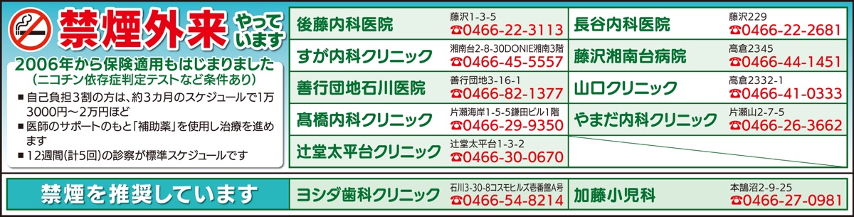 コロナ禍において、東京都医師会が喫煙と罹患率の関係性に警鐘を鳴らした。喫煙は肺に長期的で回復しにくいダメージを与え、肺炎のリスクを約3倍に高めるという。5月31日は国際禁煙デー。喫煙のリスクについて、藤沢市禁煙支援ネットワークに長年携わる山口邦彦医師と長谷章医師に話を聞いた。