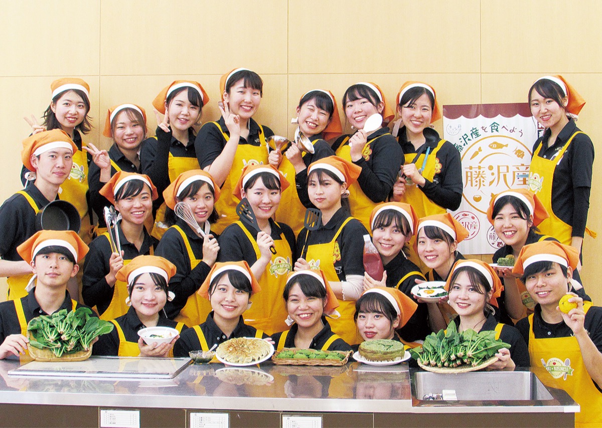 考案したのは食品ビジネス学科のフードコーディネート研究室の学生たち。同研究室は、ジェイコム湘南で放送中の市の広報番組「ふじさわごはん」のコーナーで、8年前から地産地消レシピを提案するなどしている。リーダーを務める川原かりんさん(21)は「自分たちが考えたレシピで作られた料理を提供する場ができてうれしい。たくさんの人に美味しく楽しく食べてほしい」と期待を込める。