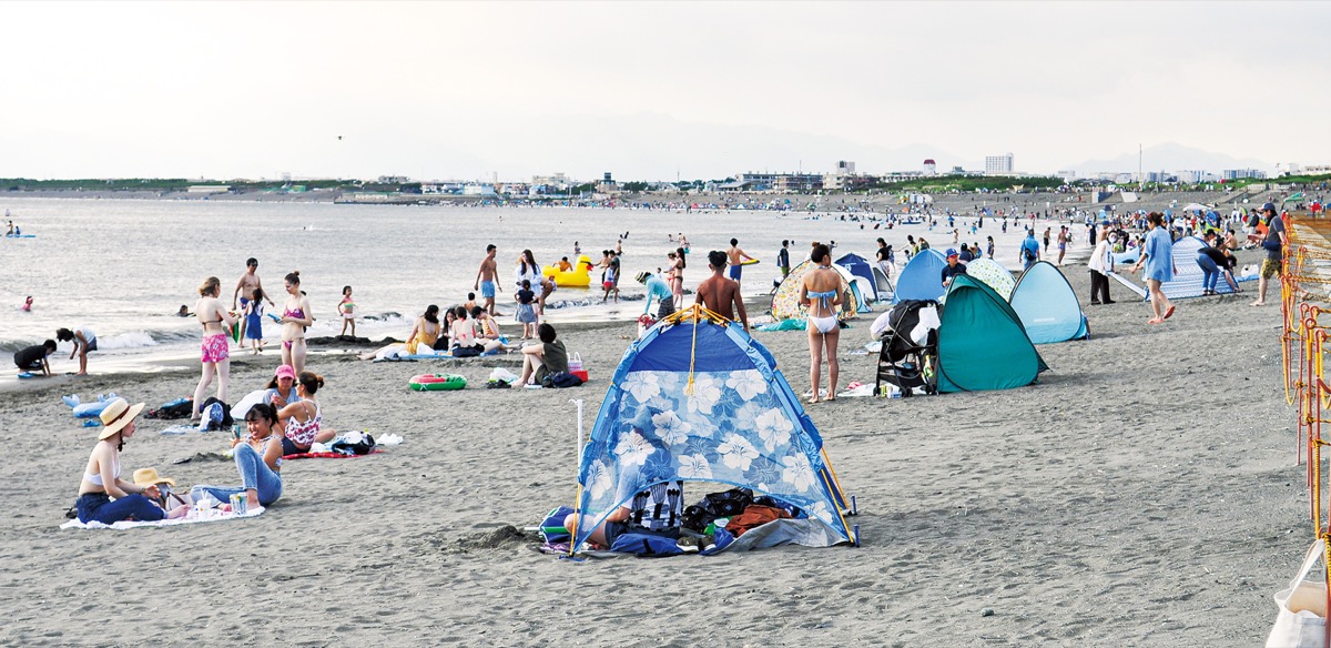 1日、関東甲信が梅雨明けし、本格的な海水浴シーズンに突入した。今夏は県下全ての海水浴場が開設されない「異例の夏」。藤沢でも3つの海水浴場は開設されていないが、砂浜では多くの海水浴客の姿が見られた。