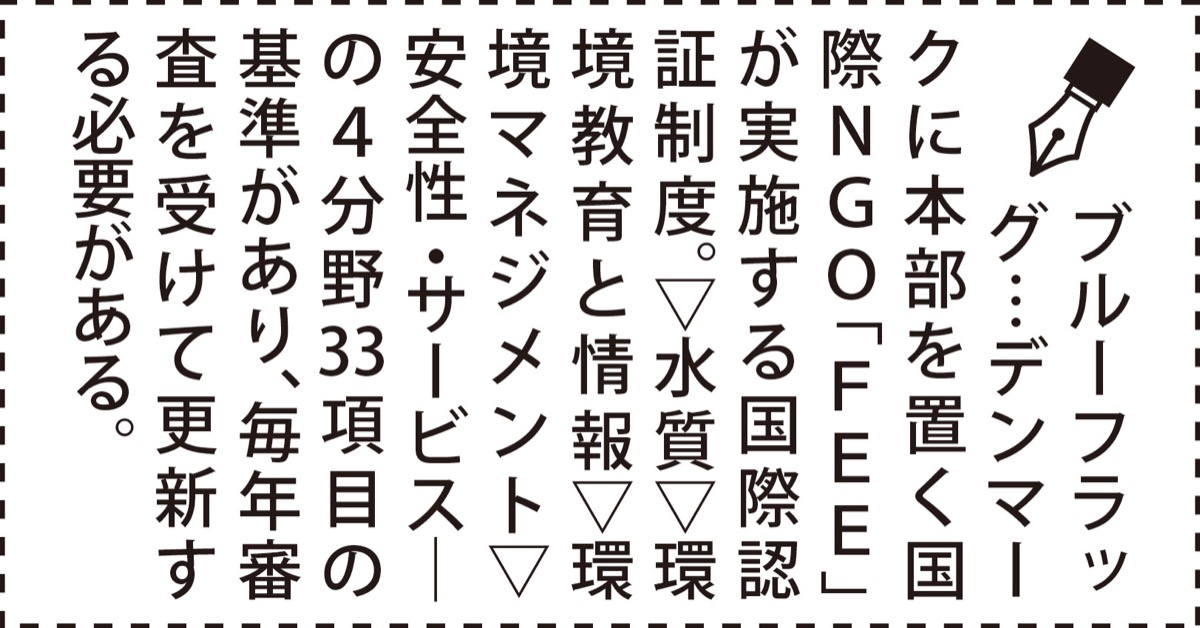取得後は国内審査委員会が定期的な審査を行い、1年ごとに更新。高い格式と誘客が期待でき、現在世界50カ国約4千カ所が認証を受けている。国内では2016年4月に由比ガ浜海水浴場(鎌倉市)と若狭和田海水浴場(福井県高浜町)が初めて取得した。