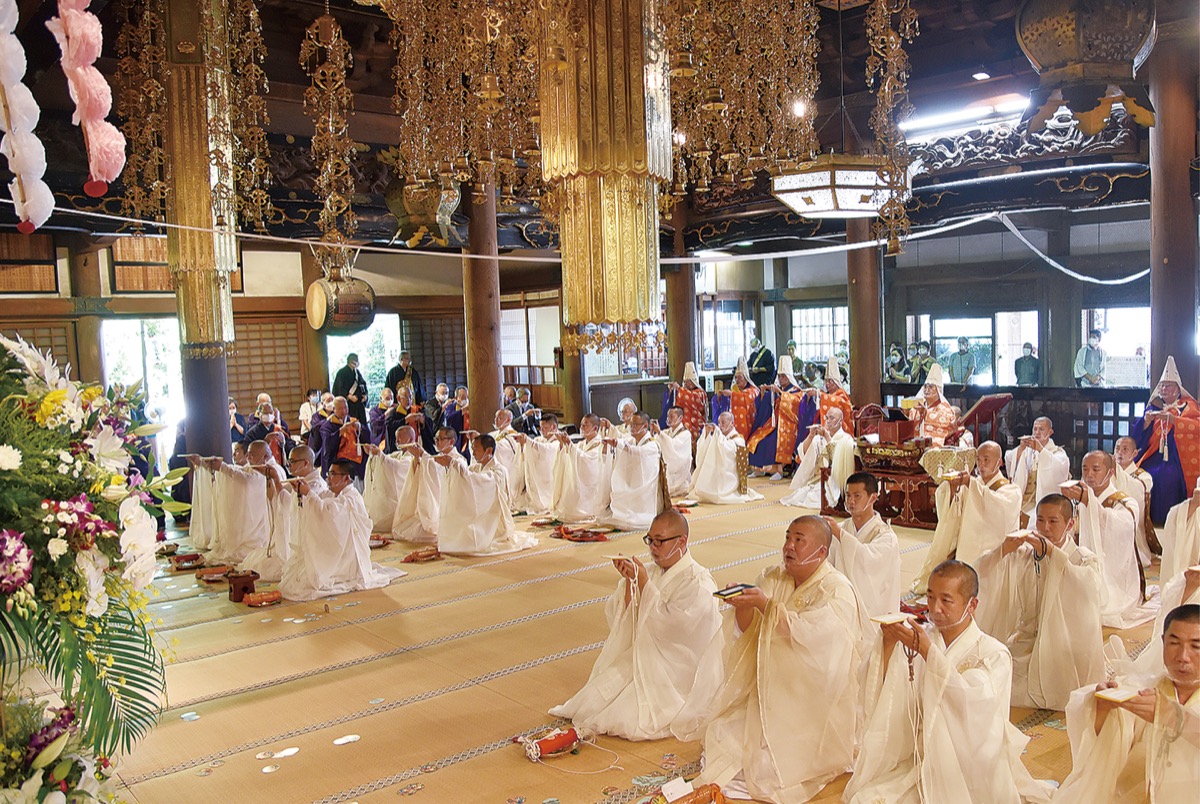 同日、本堂には白装束をまとった僧侶らが並び、約1時間半にわたり経を読み上げた。