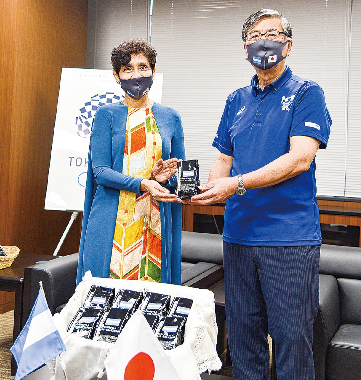 15日に開かれた中米7カ国が参加する中米統合機構(SICA)の友好式典で、日本との交流に感謝を伝える目的で決められたもの。それぞれの国がホストタウンとなる自治体の新型コロナ対策の最前線で戦っている医療従事者へ「一息ついてもらおう」とコーヒーを贈った。