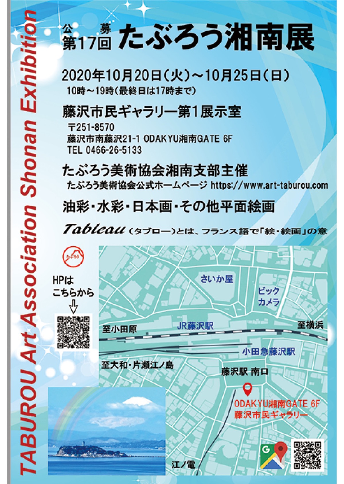 藤沢市民ギャラリー第1展示室(藤沢駅南口・ODAKYU湘南GATE6階)で、10月20日(火)から25日(日)まで「第17回たぶろう湘南展」が開かれる=写真。