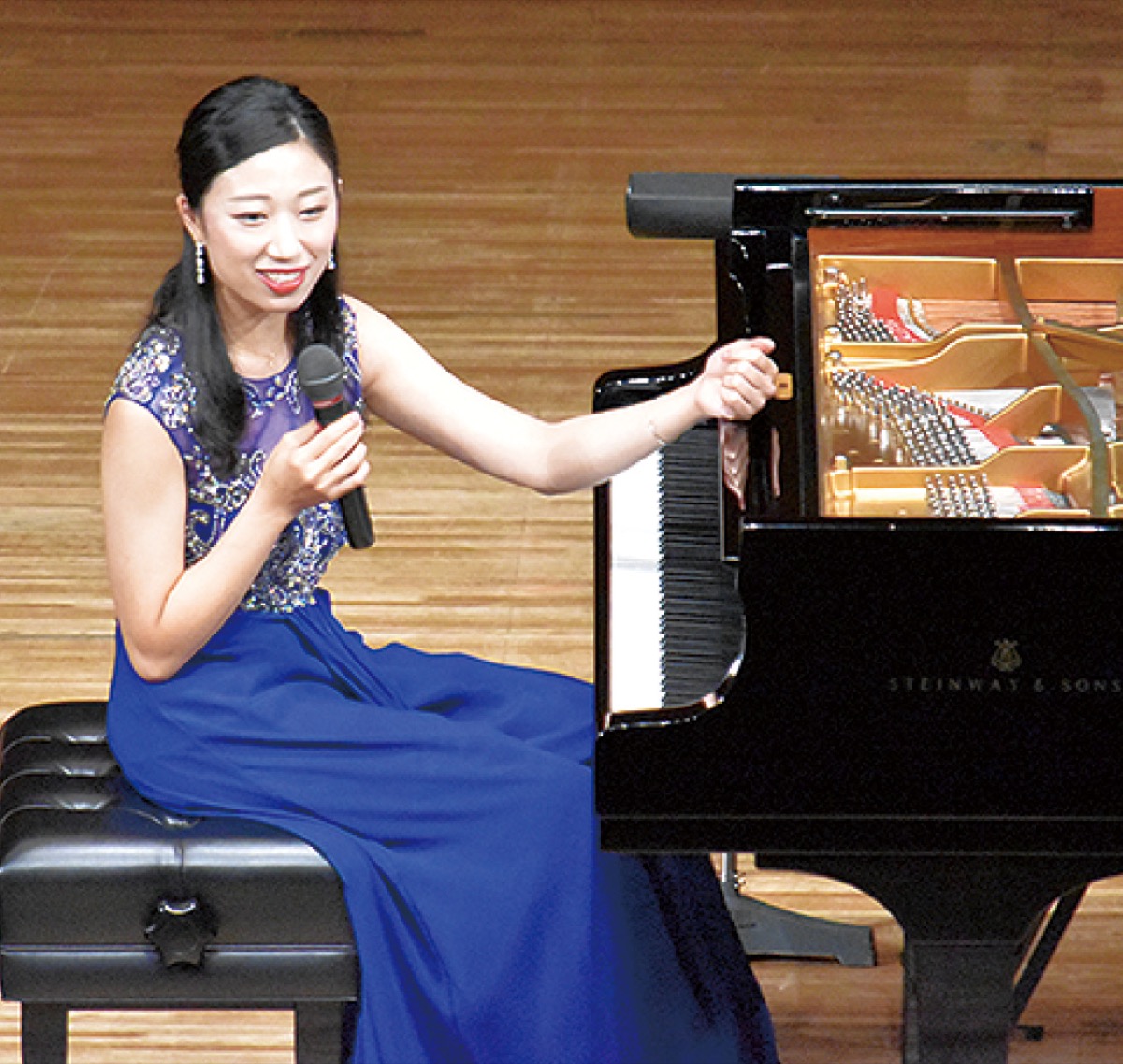ピアニスト・三原未紗子さん(31)=市内出身=が21日、母校・村岡中学校の40周年記念音楽会に出演した。