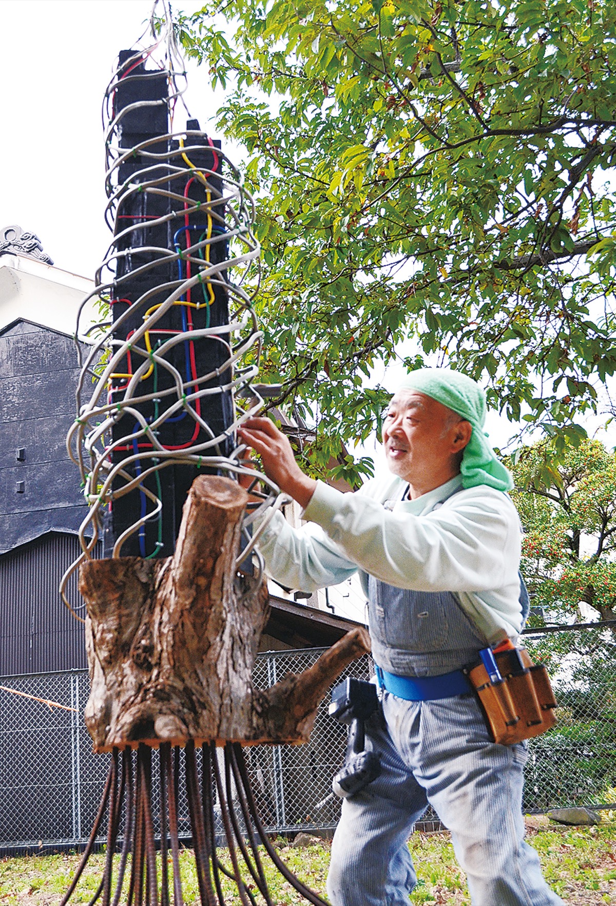 例年は海外アーティストを招き交流していたが、今回はコロナ禍で見送り、規模を縮小。感染症対策を行い開催に踏み切った。実行委員会代表幹事の伊東直昭さん(61)=辻堂在住=は「この先に向けた芸術文化活動の灯火を絶やさないために、今できる活動で存続させることが大切」と語る。参加アーティストの一人、原田暁さん(63)=本町出身=は「宿場町の木造建築から着想を得て、樹木と木材を生かした作品を現地で制作した」と話した。