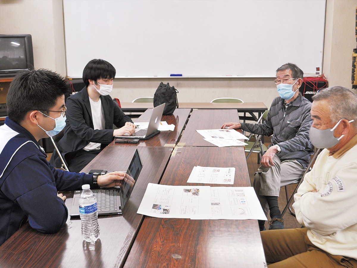 「空いている商店街会館を活用してカフェを運営するのはどうでしょうか」。学生たちの提案に「今までになかった発想。いいね」と商店街のメンバーは頷きながら話に聞き入る。