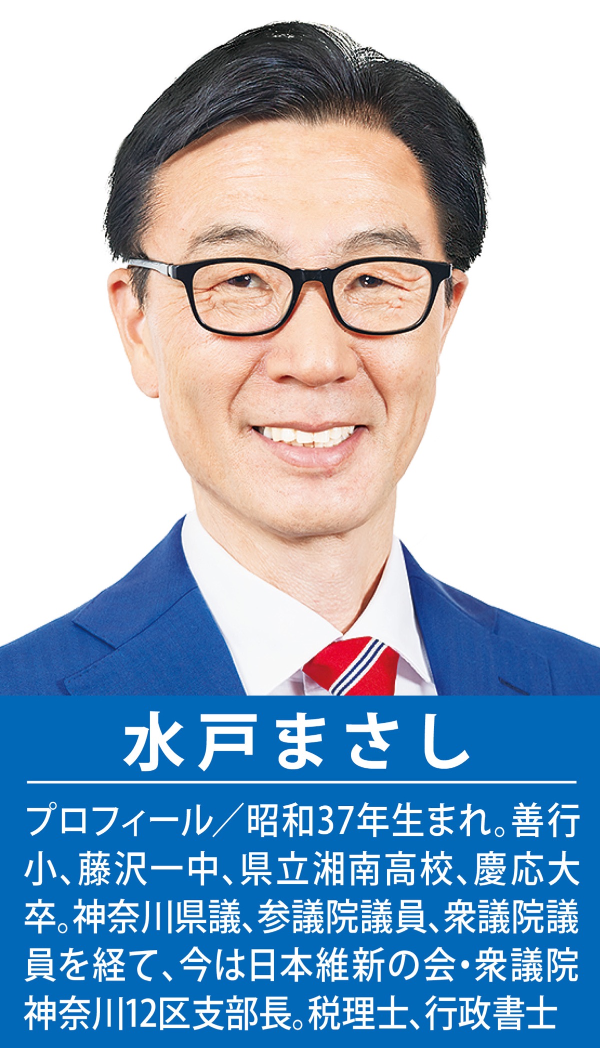 この度、衆議院の神奈川12区(藤沢・寒川)支部長を拝命しました、「水戸まさし」です。今後、紙面を通じて我が想いを発信していきますので、どうぞ宜しくお願い致します。