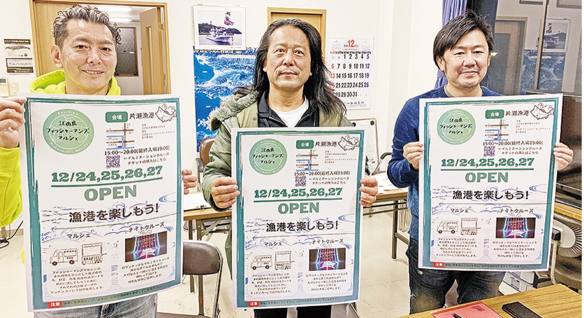 当日は藤沢産の魚や野菜、肉など「地産地消フード」などを販売するブースやキッチンカー10数台が並ぶ。また目玉は遊漁船によるナイトクルーズで、江の島の裏側から光輝くイルミネーションを楽しむ。実行委員長の栗原義忠さん(54)は「今回はテストイベントの位置づけだが、行く行くは年間を通じて開催できるよう育てたい。ぜひ足を運んでもらえれば」と話した。