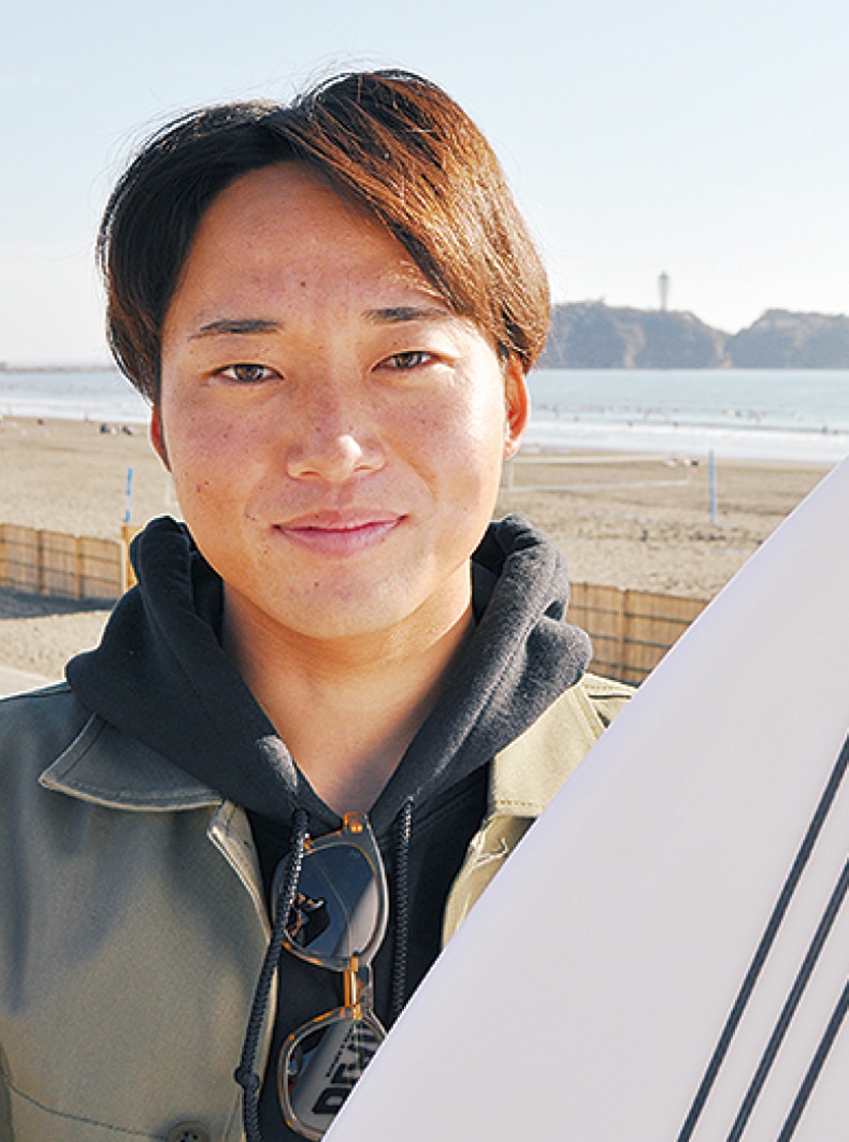 小学3年生のときに叔父の影響でサーフィンを始め、輝かしい実績を残してきた。大学1年生のときには全日本サーフィン選手権で初優勝。アマのトップにも立った。