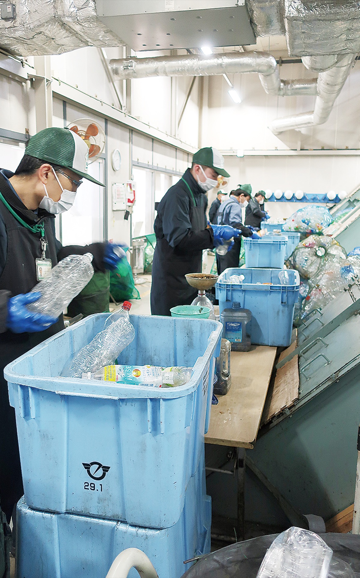 金田代表理事は「リサイクル業は危険で障害者には向かないという考えが常識だった」と振り返る。「まずは相手を知る事」と関係各所を訪れ「得意なのは集中。単調作業が丁寧」と聞き、回収したペットボトルのラベル・キャップを取る業務を任せることにした。