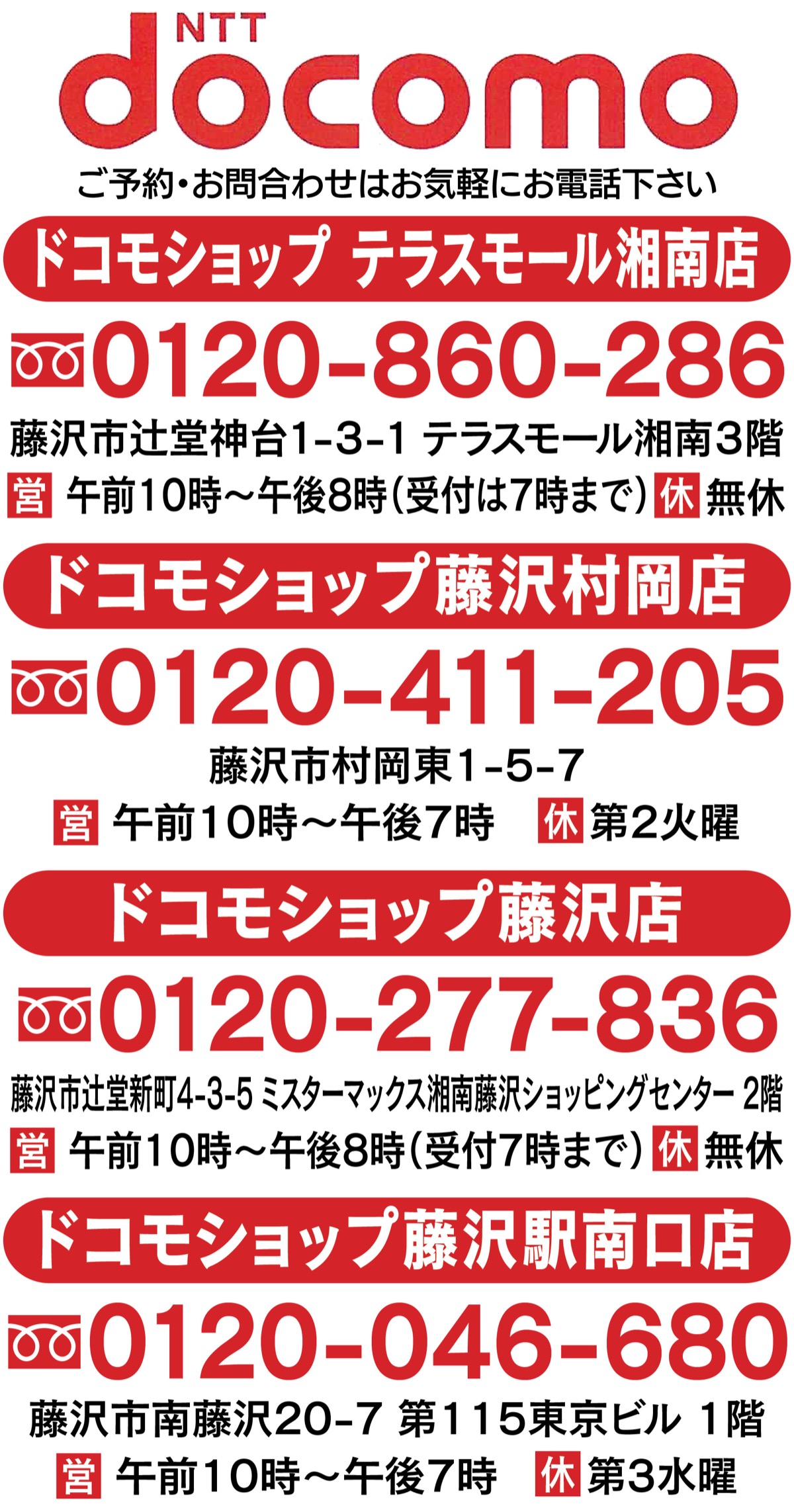 ドコモショップ藤沢村岡店・藤沢店・藤沢駅南口店・テラスモール湘南店