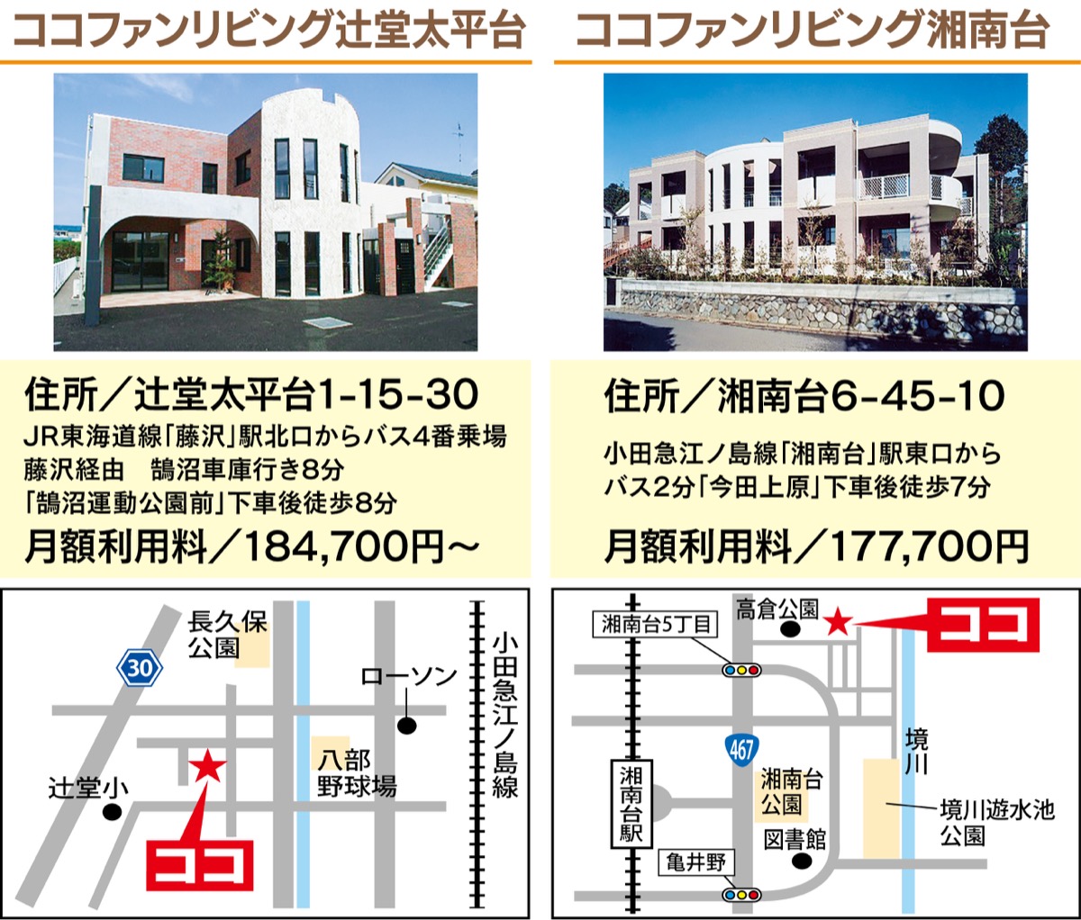辻堂太平台1-15-30(ココファンリビング辻堂太平台) 湘南台6-45-10(ココファンリビング湘南台)