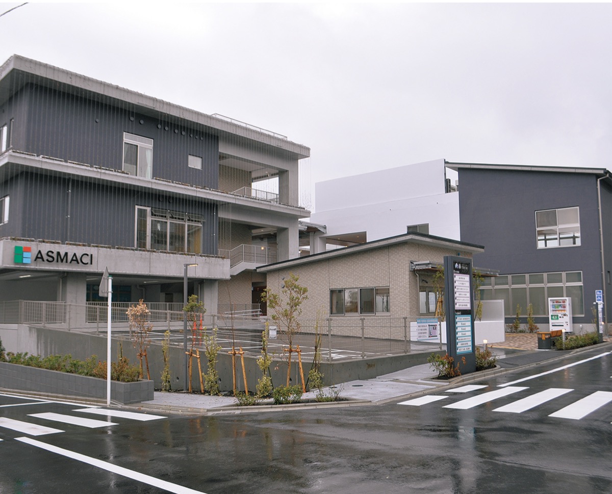 民間施設「ASMACI(あすまち)」には歯科や小児科、薬局、小規模多機能型居宅介護施設が入居。今後放課後等デイサービスやフィットネススタジオを誘致する。