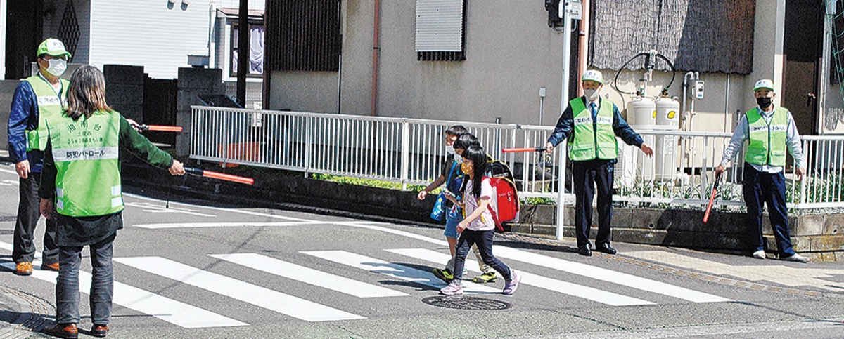 湘南台商店連合会(最上重夫会長)による地元児童の下校に合わせた見守り活動が20日、湘南台2丁目交差点を中心に行われた。市商店会連合会によると商店会による見守りは珍しいという。
