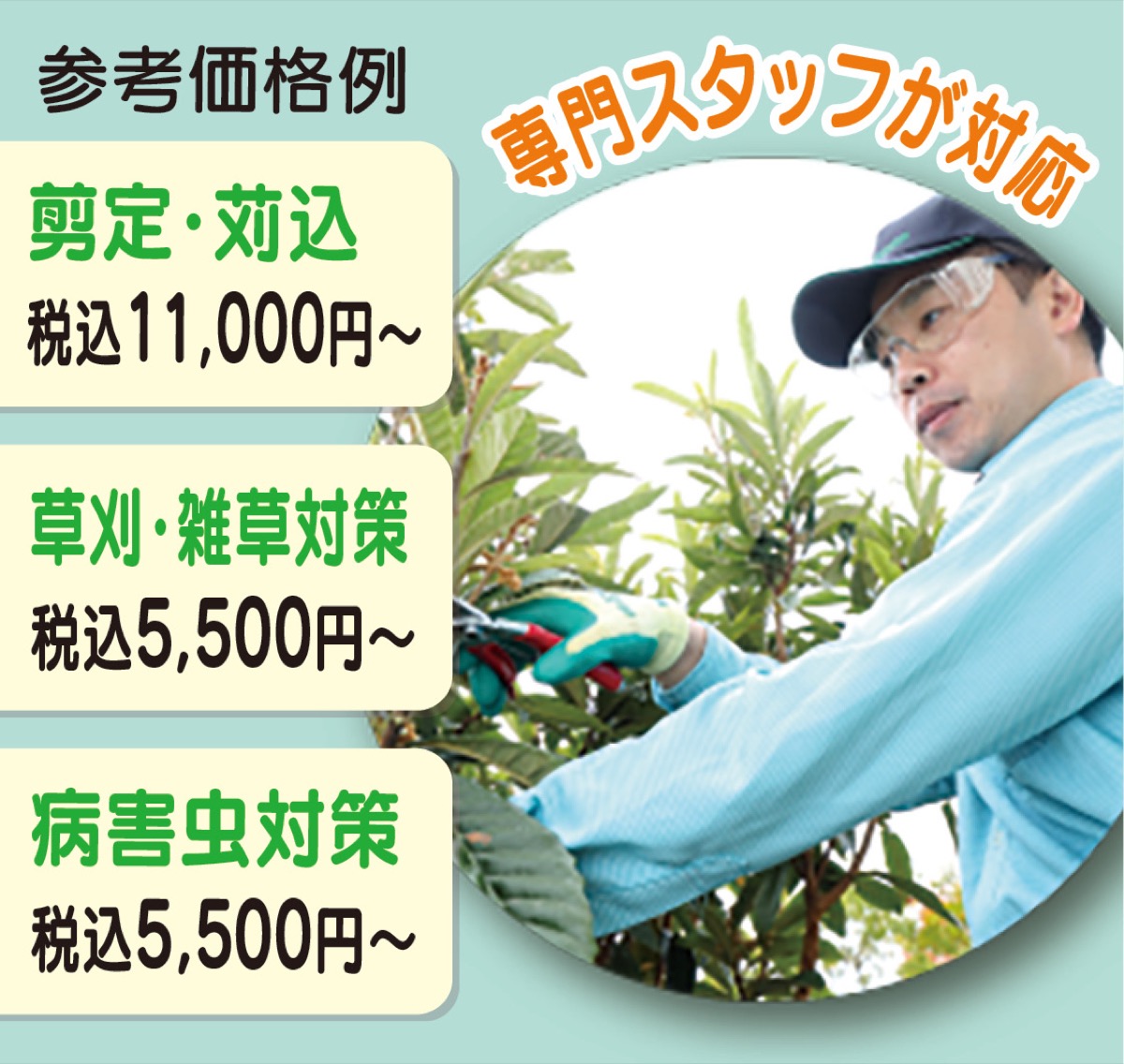 庭木ごとに異なる最適な剪定時期など、特性を熟知した専門スタッフが個々の庭の状況に応じた手入れ方法を提案してくれる。定期的な剪定管理のほか、雑草・病害虫の困りごとや植樹・伐採・外構工事・マンション植栽管理まで対応。「お庭に関する相談は全てお任せ下さい。花が咲き生き生きとした緑のある季節を感じる庭づくりを目指します」とスタッフ。見積・相談無料。まずは電話で問い合わせを。
