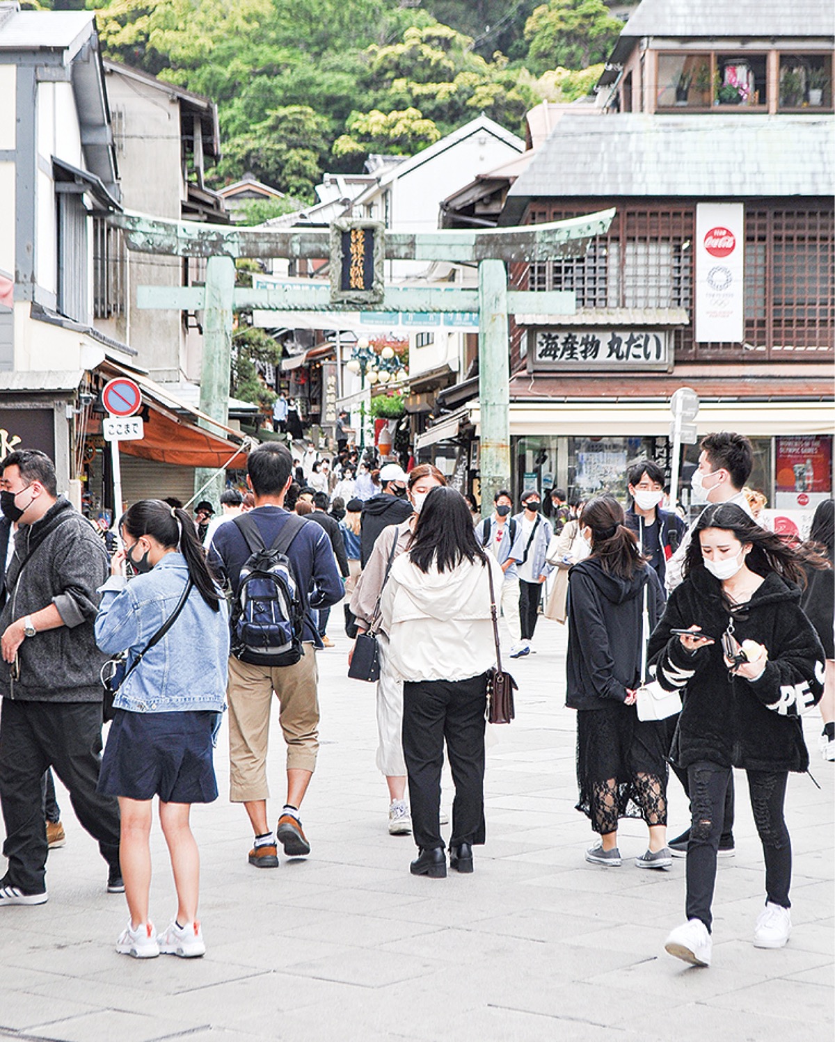 大型連休最終日の5日午後、島内には若者の姿が目立ったが、行き交う人はまばら。江の島観光会会長の二見将幸さんは「営業できるだけありがたいが、コロナ前と比べるとまだ圧倒的に客足は少ない。若者は中高齢層に比べて消費が少なく、人出5割、売上3割の印象」と連休を振り返る。