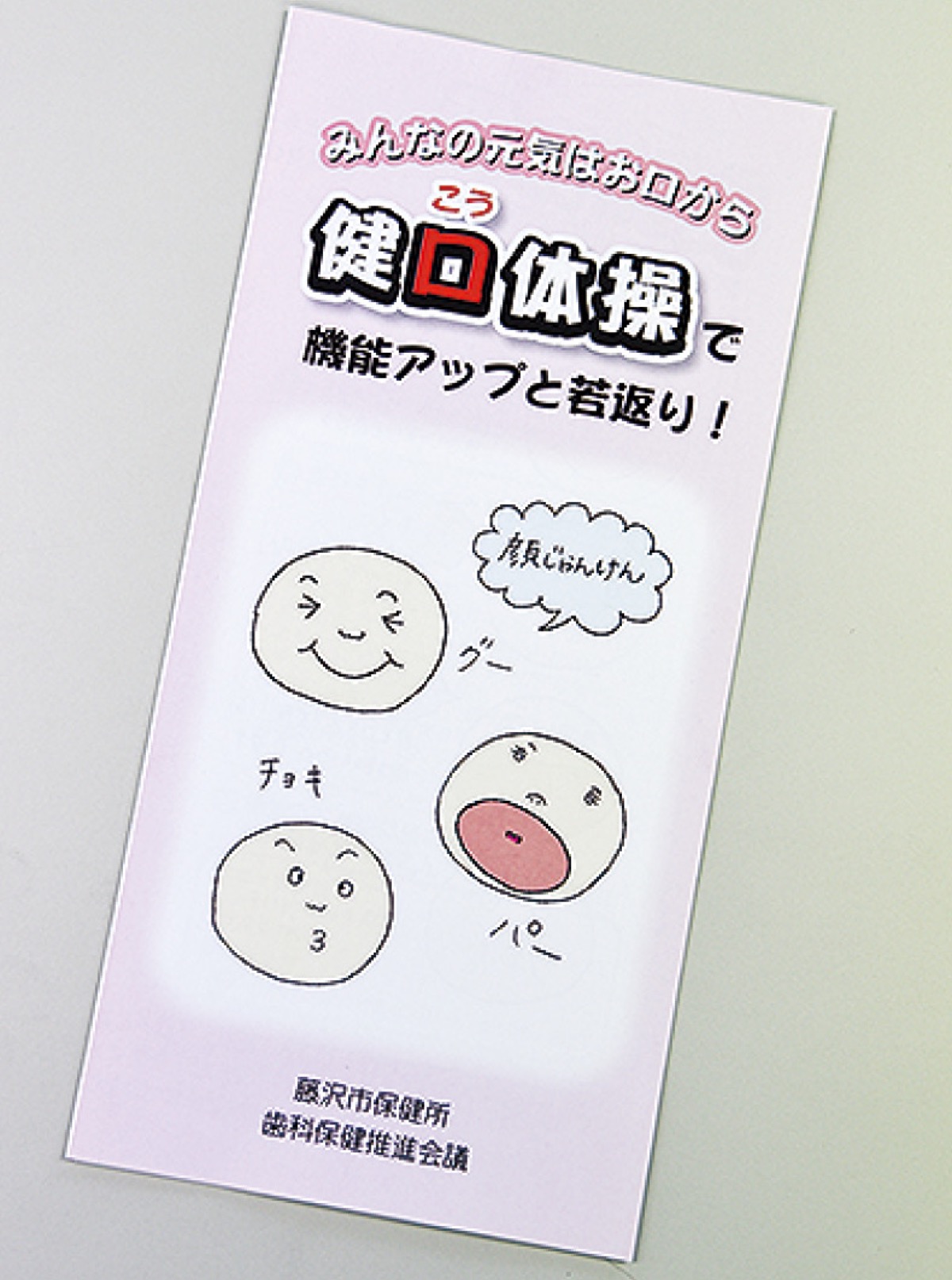藤沢市は口の機能低下防止に役立ててもらおうと「健口(けんこう)体操」のリーフレットを配布している。