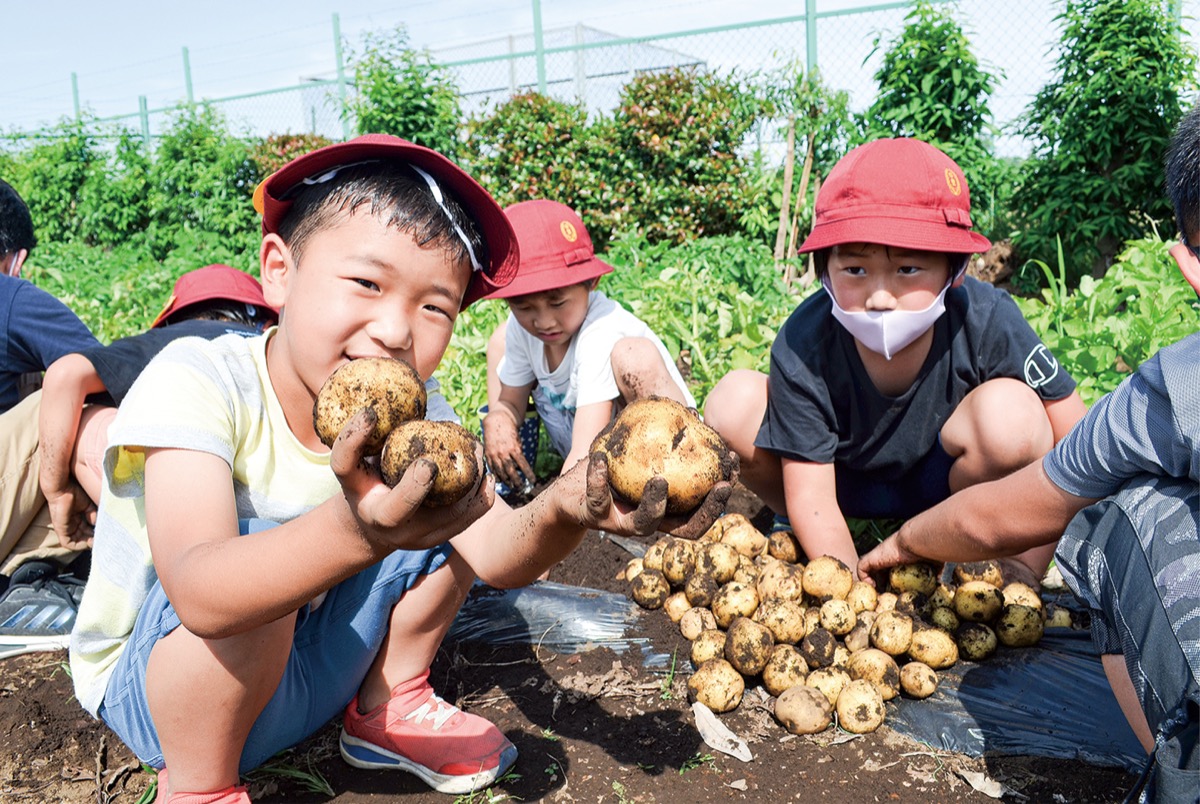 同クラブ恒例の体験イベント。ジャガイモの育て方や掘り出し方を教わった後、子どもたちは畑に駆け出していった。