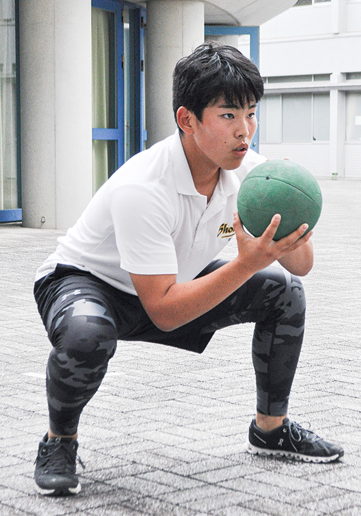 選手は10人。「出場人数がギリギリなので、誰一人として欠けることはできない。今、最大の敵はケガ」。練習時間が限られている中でも、可動域を広げるストレッチは欠かさない。ボールを使ったトレーニングでは、投手からの本塁でのキャッチングをイメージし、流れるような二塁への送球フォームを納得がいくまで繰り返す。全体守備練習には相手ランナー役が足りないなど少人数ならではの不便もある。それでも、真っ直ぐ先を見据える瞳には喜びがにじむ。「やっとメンバーが揃った。単独出場できるのがうれしい」