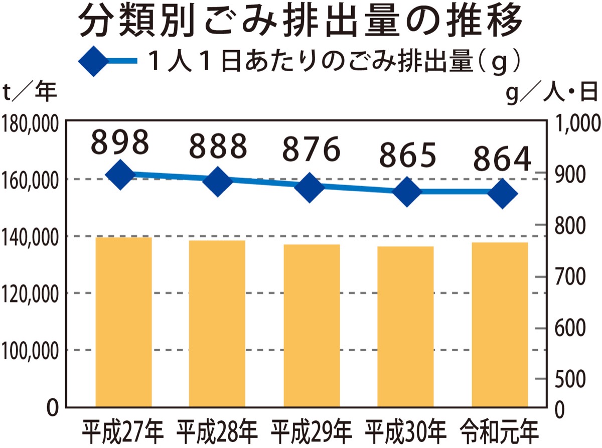市環境総務課は回収量について「1人あたりの排出量はゆるやかに減っているが、人口増にある中で全体量減には至っていない」と話す。