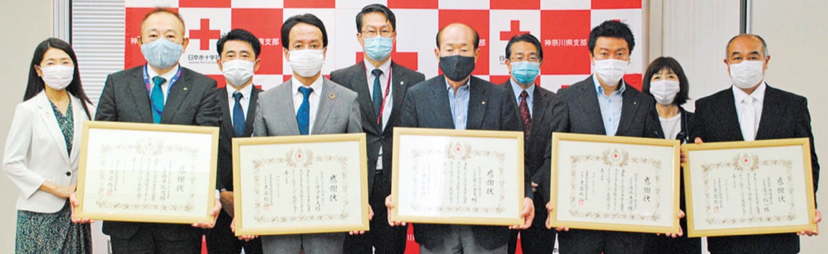 コロナ禍で献血者が減少する中、今年4月に大相撲藤沢場所に関連する献血キャンペーンで大きな実績をあげたとして、藤沢市内5事業者が9日、日本赤十字社神奈川県支部(支部長・黒岩祐治県知事)から特別感謝状を受け取った。