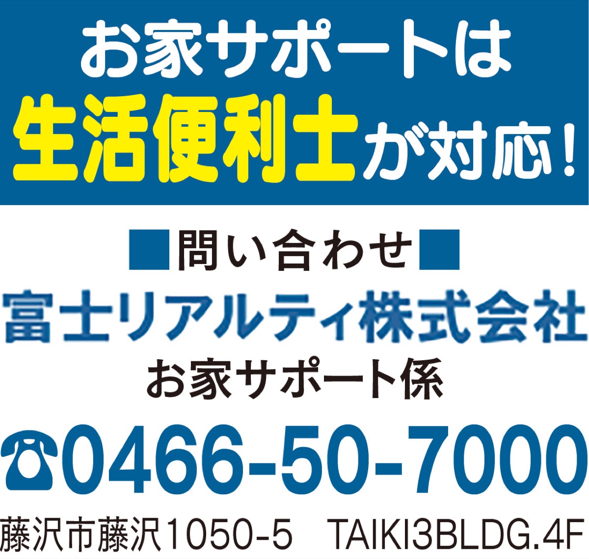 湘南の便利屋さんとして「お家のサポート」を行う富士リアルティ。遺品整理や生前整理、家具の処分など、お家丸ごと引き受けてくれる「不用品整理」をはじめ、電球の交換や家具の組み立て、買い物代行、草むしりなど生活の些細な事までサポートしてくれる「便利屋」が人気。