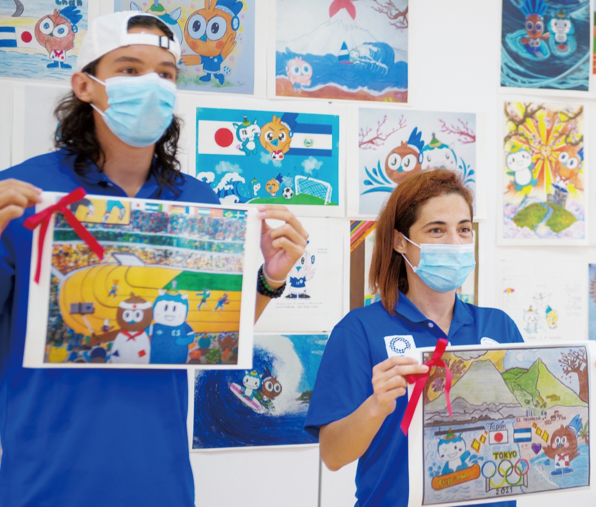 東京五輪・パラリンピックを通じて、エルサルバドルとホストタウンの藤沢市の友好を促進しようと、在エルサルバドル日本国大使館がこのほど「友情イラストコンクール」を行った。先月16日には、行動制限がかかる中、事前キャンプを行った県立スポーツセンター(善行)で、選手2人が「オリンピック賞」を選んだ。