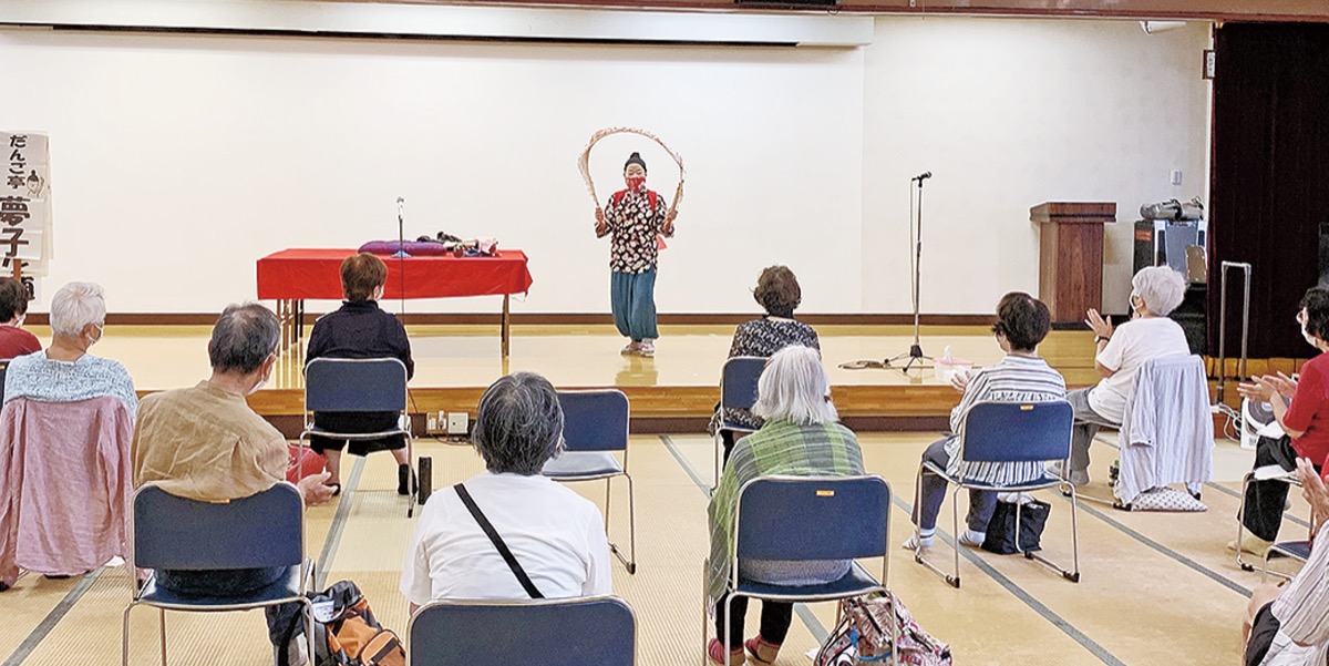 長引くコロナ禍で観客にとってもイベントは久しぶり。この日は落語に色物など演目も多彩で、足を運んだ善行団地在住の女性(74)は「とても面白い。家に一人でいると気分が沈みがちだけど、皆さんと一緒に笑うと元気がでる」と喜ぶ。