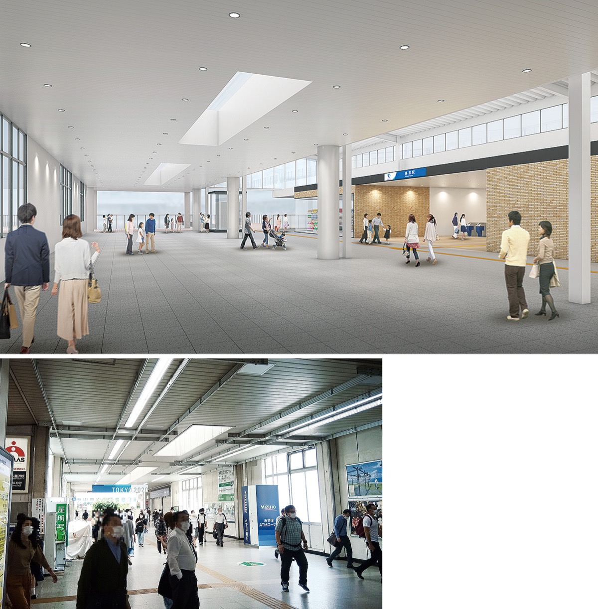 現在の藤沢駅は小田急線改札が1階、JR改札が2階にあり、改札間と南北自由通路の動線が交錯。整備後は3線の改札が全てが同じフロアになる。市は駅利用者の利便性を向上させるともに回遊性を高め、周辺地区の活性化を図りたい考え。