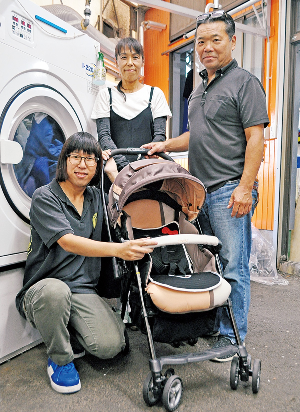 きっかけは約4年前、同店を訪れたある子連れ女性。持ち込まれたのはカビだらけのベビーカー。当時は衣類外を扱う店舗も少なく、同店でも対応していなかったが「この子のためにどうにかできないかと切羽詰まった様子にほだされ、思わず引き受けてしまった」と斎藤代表。「祖父の代から続くクリーニング屋の職人魂」で一週間掛かりで仕上げた。