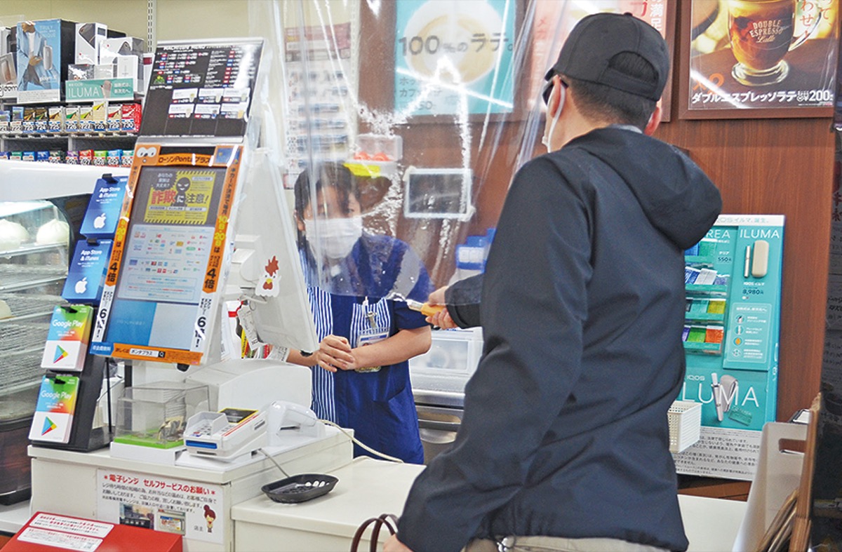 詐欺防止の声掛け訓練では、高額の電子マネーを購入をしようとする客に、従業員が購入理由など具体的な状況をヒヤリングし説得。強盗対応訓練では、従業員がレジで勤務中に刃物を向けられ現金を要求される想定で実施され、非常通報装置を使った人命第一の対応が良かったと講評された。