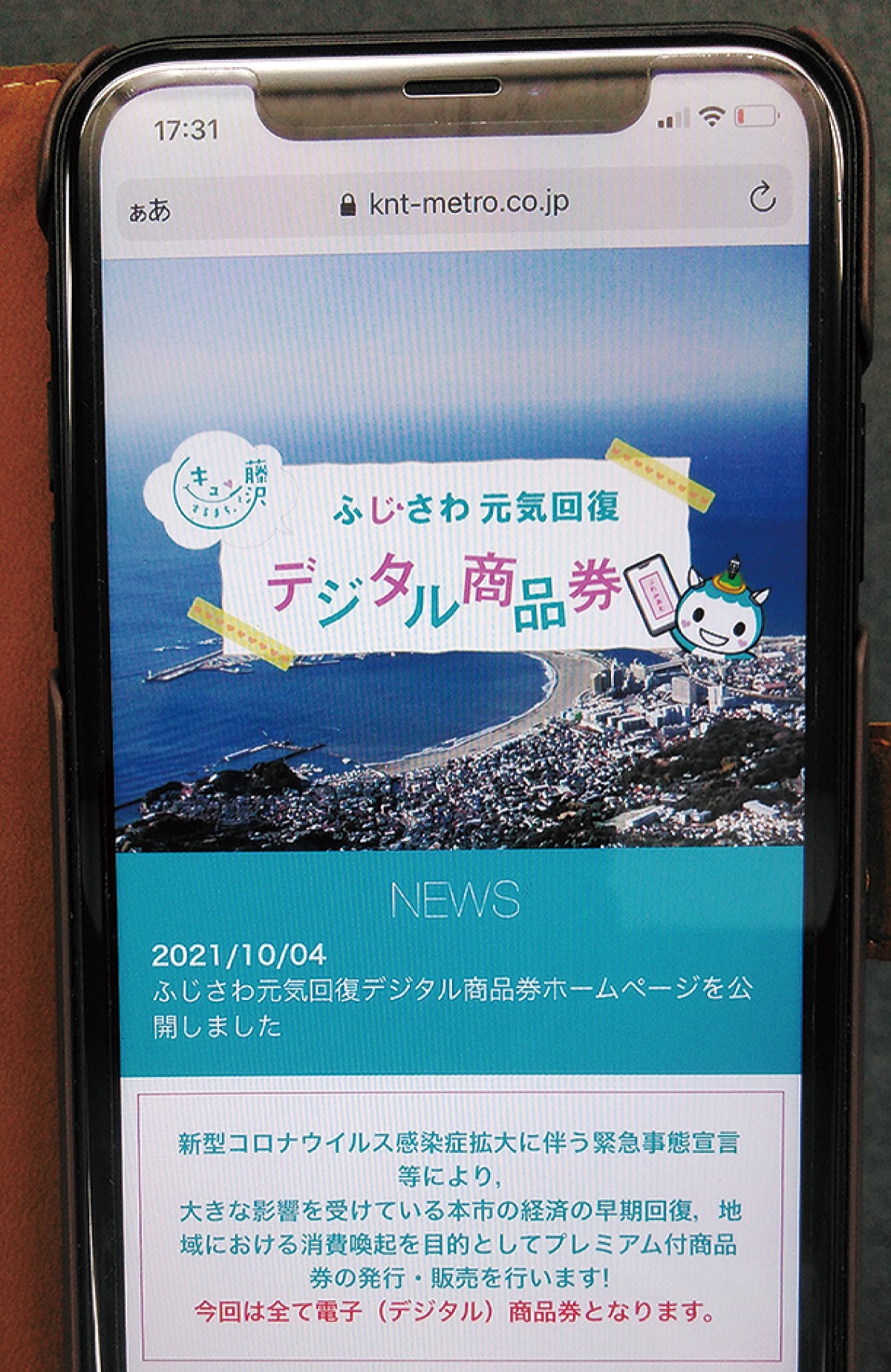 新型コロナウイルスの影響で落ち込む地域経済や個人消費を喚起するため、藤沢市が発行する「ふじさわ元気回復デジタル商品券」の購入受け付けが11月1日から始まる。今回は商品券自体を紙で発行せず、全てスマートフォンなどを通じて利用する電子型なのが特徴で、20%のプレミアム率を設けた30万セットを用意。関係者は「多くの市民に利用いただき、市内経済の元気回復につながれば」と期待している。