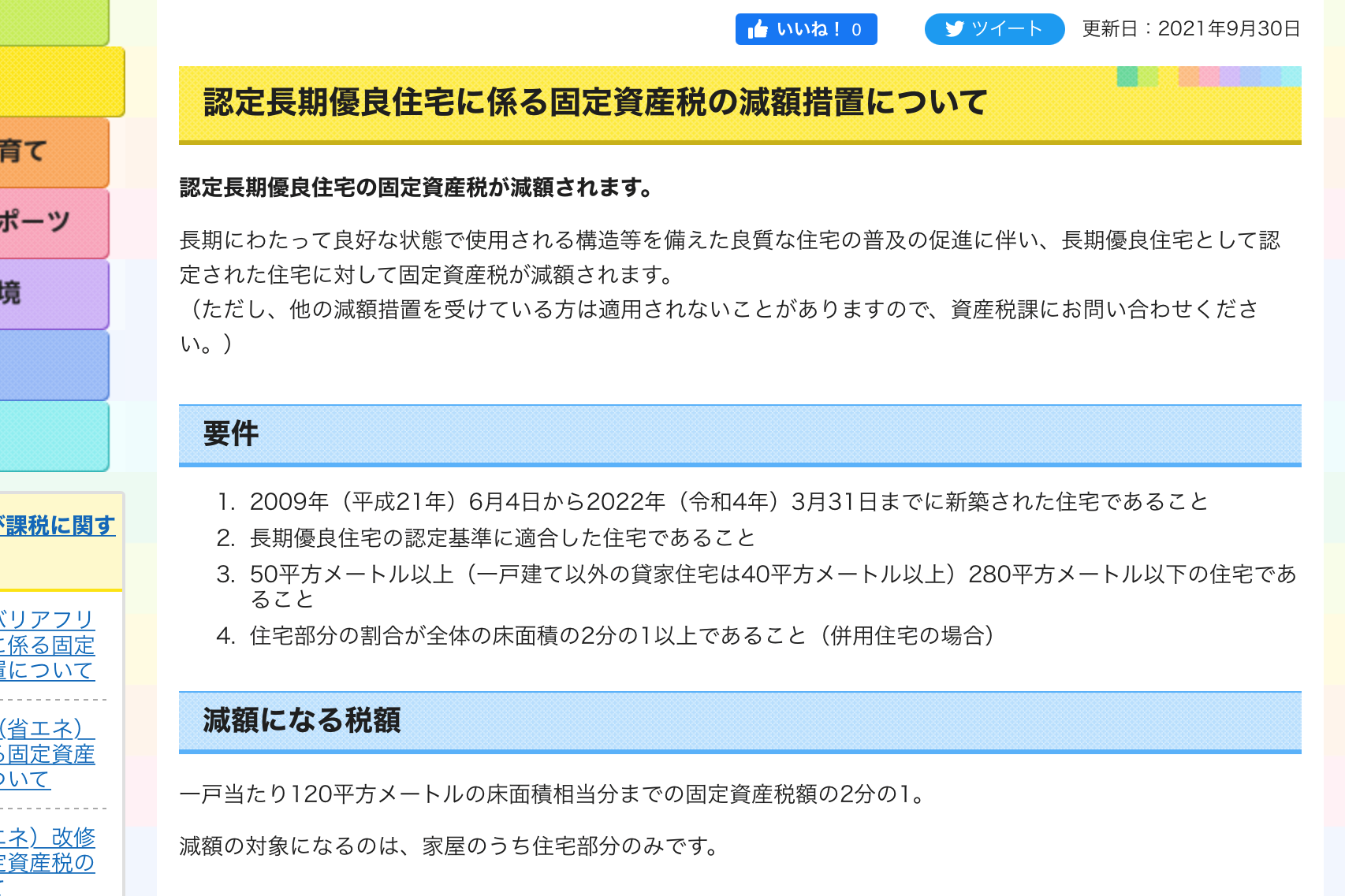 藤沢市は、認定長期優良住宅に対し、固定資産税の減額を実施している。 https://www.city.fujisawa.kanagawa.jp/sisanzei/kurashi/zekin/koteshisan/chokiyuryo.html